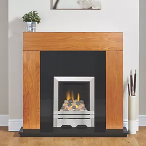 Pebble-effect fuel bed. Brushed stainless steel fascia.
